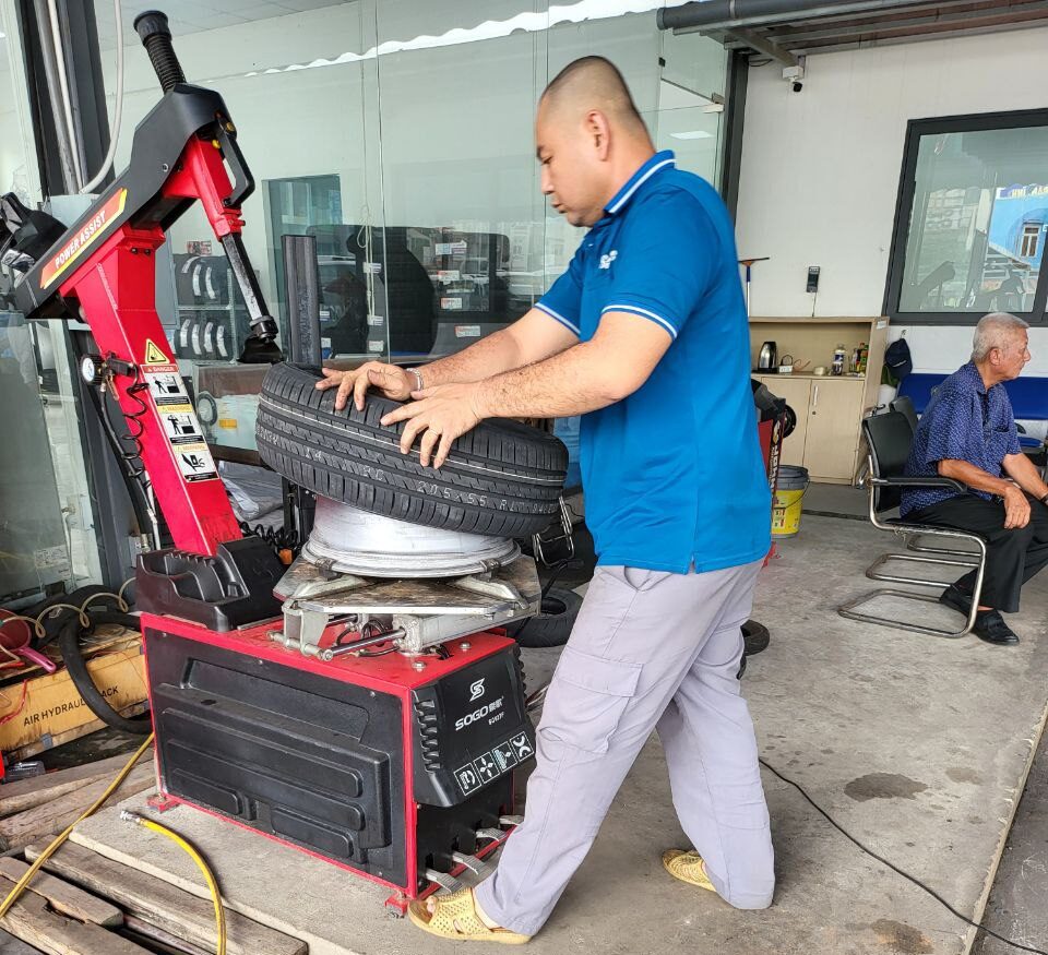 Thay lốp ô tô bằng máy chuyên dụng